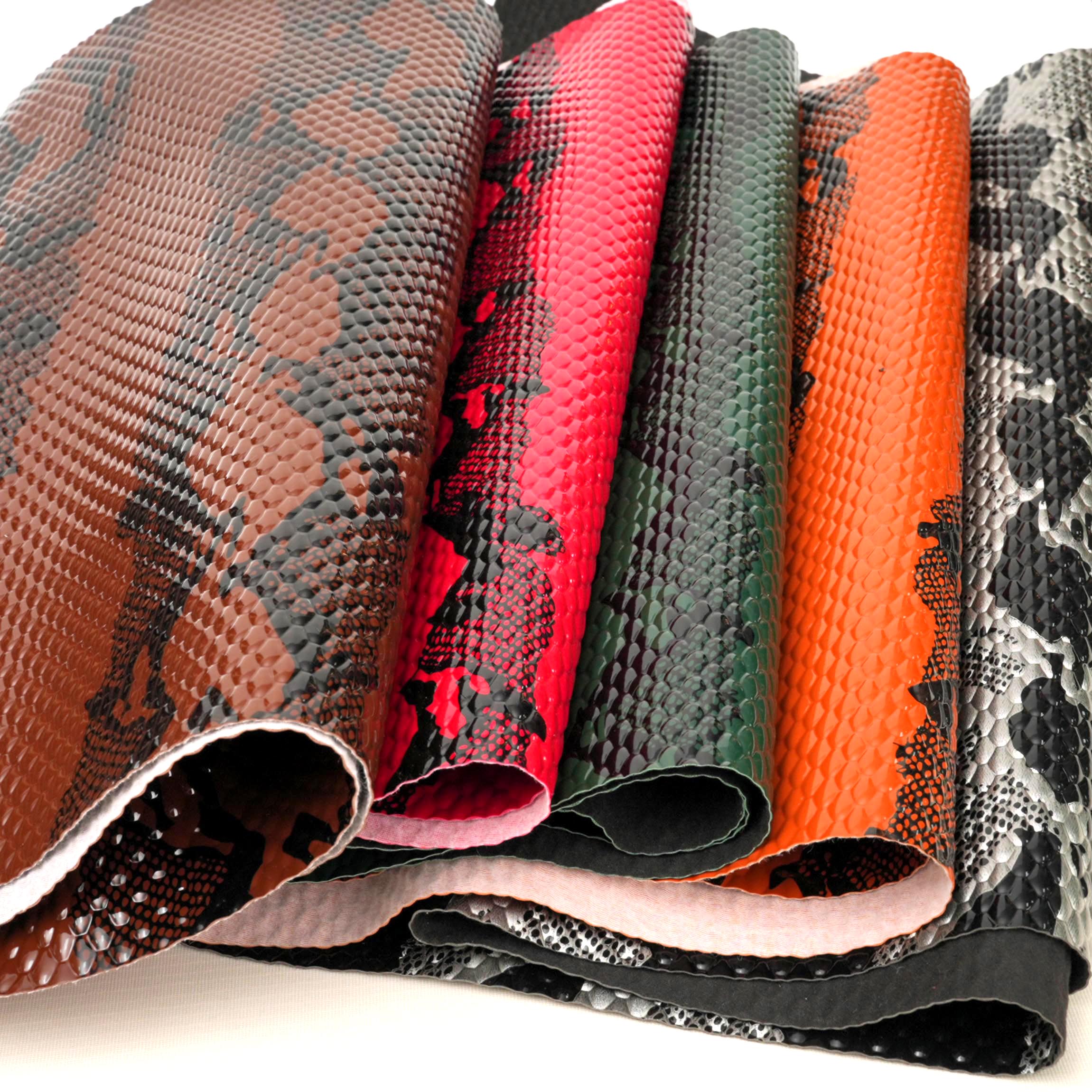 In the fashion and upholstery industries, exotic patterns like snakeskin continue to be highly sought after. This high-gloss printed snake pattern PVC leather provides a luxurious aesthetic while maintaining the practicality and durability that synthetic leather is known for. Its shiny finish, firm handfeel, and unique pattern make it an excellent choice for premium bags, accessories, and furniture applications.