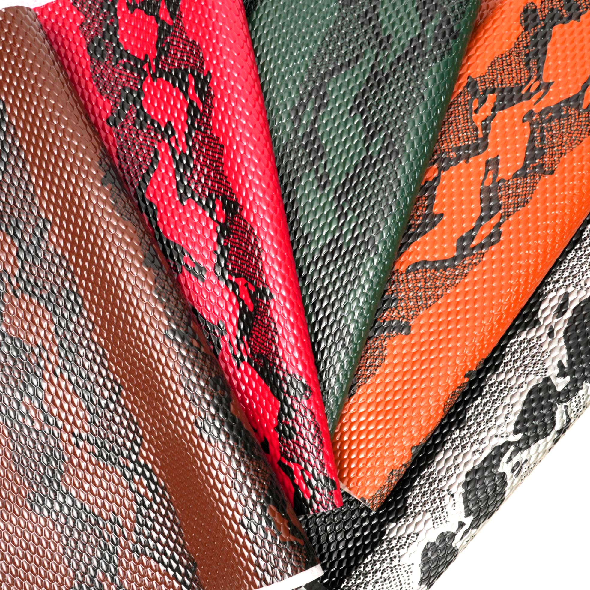 The high-gloss printed snake pattern PVC leather offers an exceptional combination of style, durability, and versatility. Its exotic snakeskin appearance, firm structure, and excellent performance make it a top choice for bags, luggage, upholstery, and fashion goods. With custom printing and color options and an MOQ of 1000 meters, it is ideal for brands seeking premium, visually striking synthetic leather solutions.